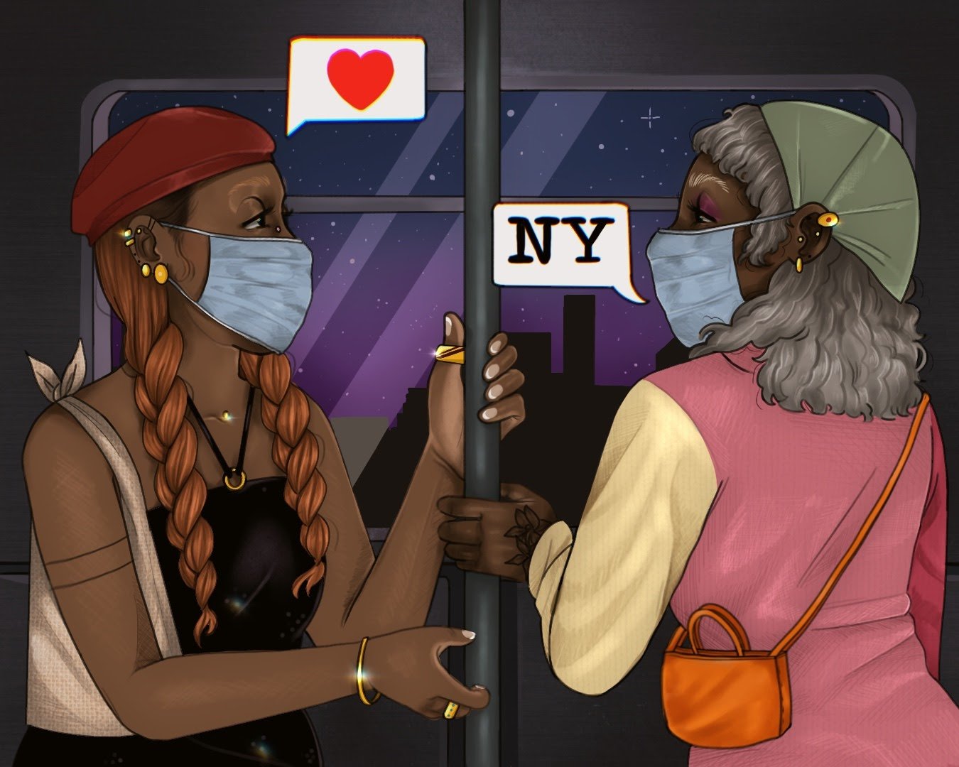 I was commissioned to draw what being a native New Yorker means to me. This illustration showcases the tight-knit vibe and community spirit you feel in the black queer NY community.
